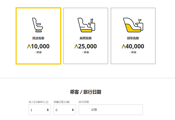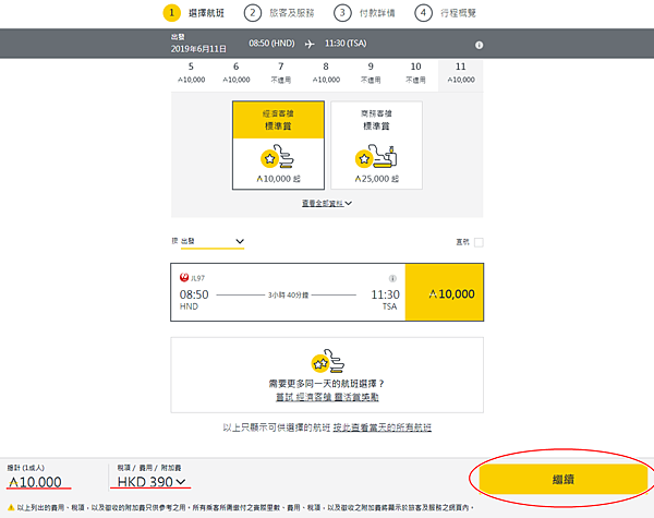 點選經濟客艙後