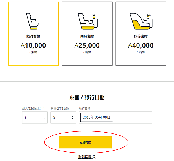 這次要兌換單程機票點選單程(來回就點來回囉廢話)