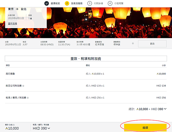 再來就是選擇航班的訊息囉