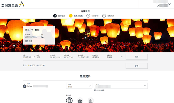之前由國泰官網兌換亞洲萬里通里程機票的時候提到: