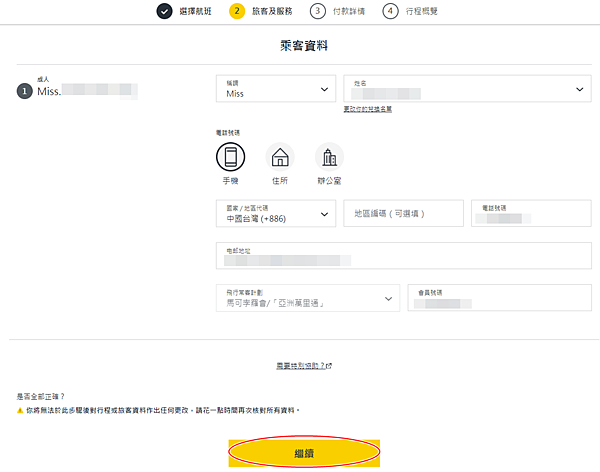 再來乘客資料的填寫