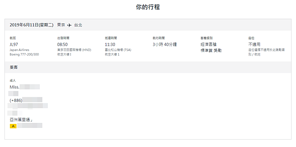 因為是對換日本航空的機票所以無法直接在亞萬官網選位