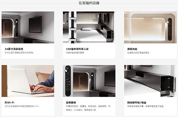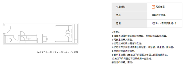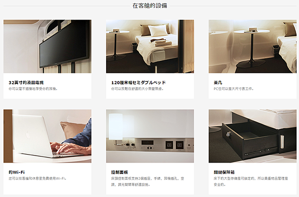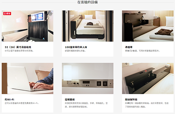 在日本每間FIRST CABIN膠囊旅店所配置的艙等都不太一樣