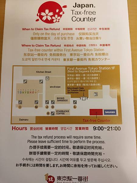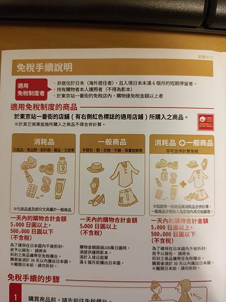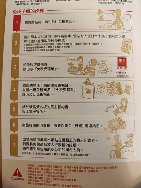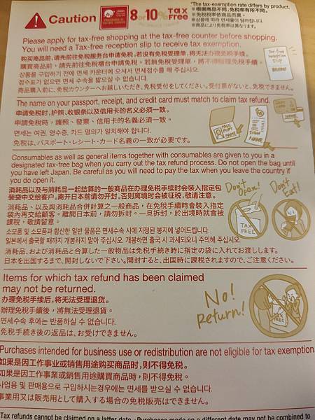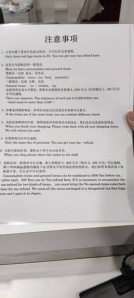 熟悉中文的櫃台人員相當親切的遞給我們一張退稅的注意事項
