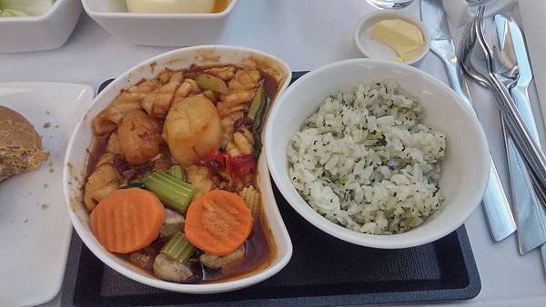 今天主餐有海鮮燴飯以及什麼肉之類的