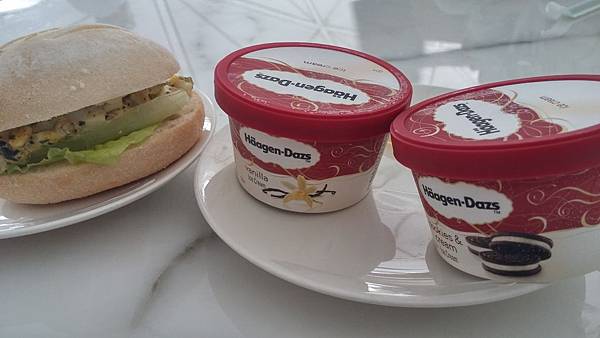 匆匆找個位置拿個哈哈大使跟三明治來吃